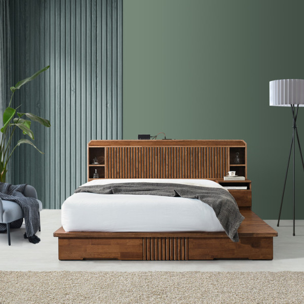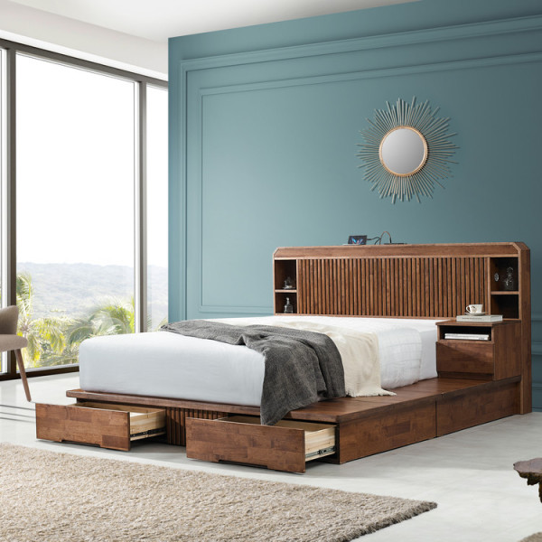 원목 색상: 월넛주문 가능 SIZE: LK / K / Q / SS주요 소재: 고무나무/ 삼나무/ 멀바우주요 특징: LED 매립형 조명 / 3TYPE LED 조명/ USB 콘센트/ 서랍 2EA/ 미니 협탁